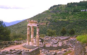Das Orakel-Heiligtum des Apollon liegt am Südhang des Parnass-Gebirges. Für die Weissagungen der